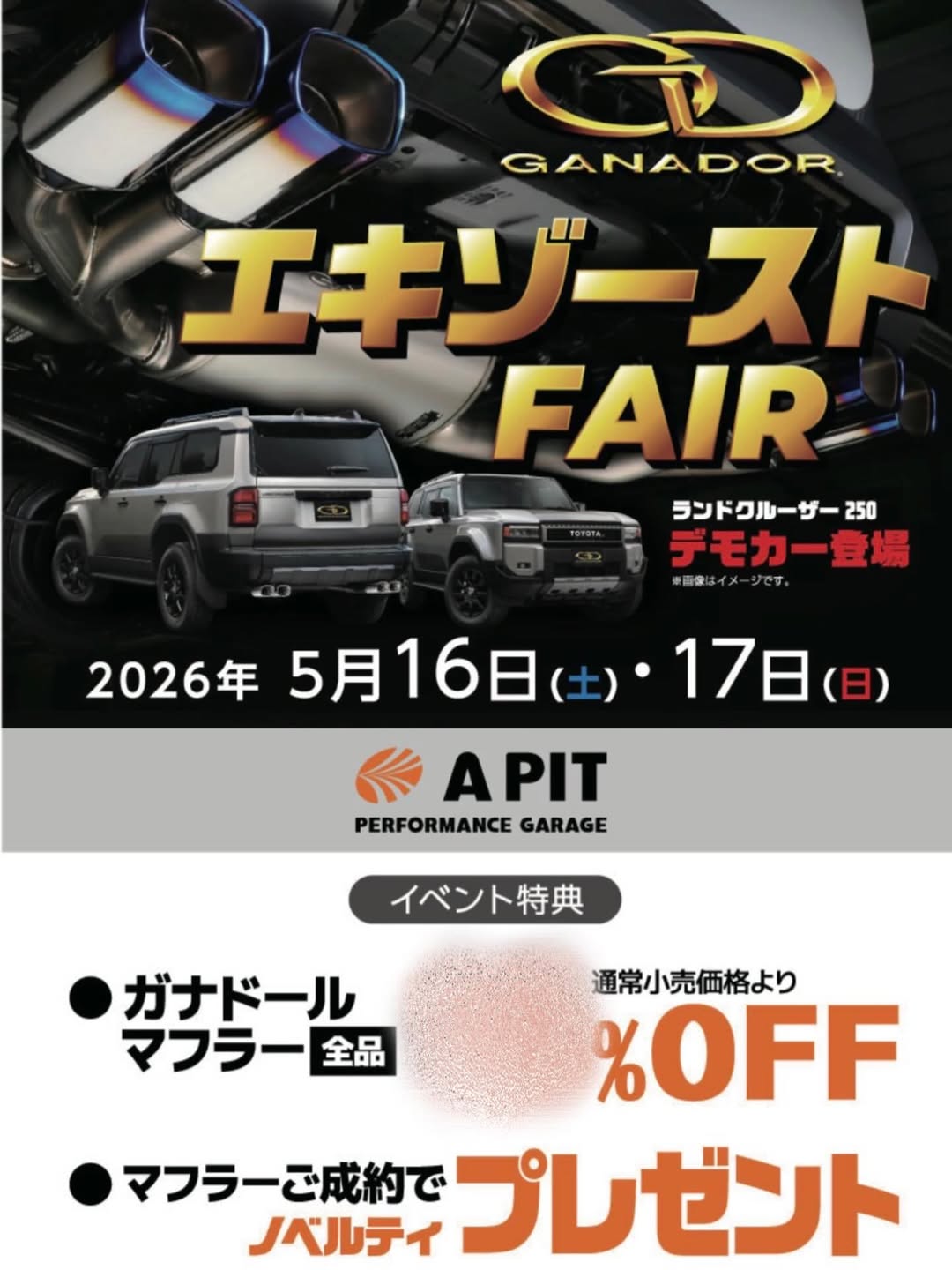 - A PIT PERFORMANCE GARAGEさん(SA東福岡店内)で、ガナドール店頭イベントが開催されます。